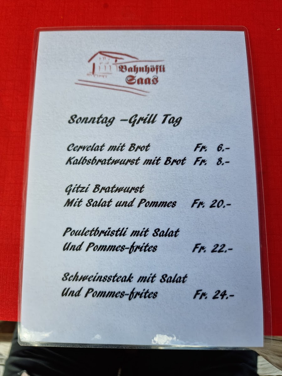 Restaurant Bahnhöfli Saas is a charming culinary gem nestled on Bahnhofstrasse in Saas im Prättigau. This cozy eatery impresses with its commitment to top-quality ingredients, ensuring every dish bursts with authentic flavor. The menu surprises with a delightful blend of traditional Swiss and unexpected Thai influences, crafted carefully by the talented kitchen team. From the perfectly seasoned sausages to the thoughtfully selected teas and house-made mayonnaise served with crispy fries, each bite reflects meticulous attention to detail. Guests consistently praise the warm, friendly service and the swift delivery of meals, creating a relaxed and inviting atmosphere. The unique location beside the quaint train halt adds a playful charm, making it a favorite spot for both locals and travelers. Whether savoring exquisite flavors or enjoying the lively train views, dining here feels genuinely special—a place where quality and hospitality converge beautifully.